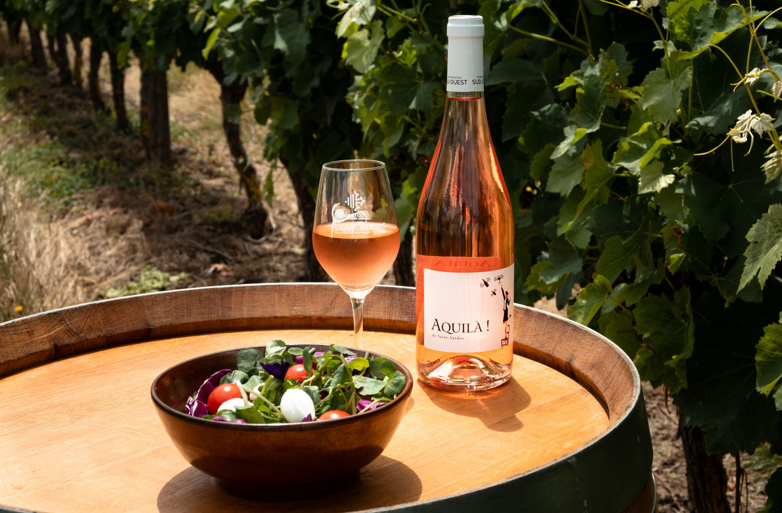 Rosé de saignée issue d’une légère macération pelliculaire de quelques heures, les températures basses (16-18°) sont maîtrisées et la fermentation est optimisée afin de préserver le caractère fruité et la fraîcheur du vin. AQUILA ! se caractérise par une couleur grenade. Avec des aromes de fruits rouges murs, de bonbon à fraise et de soupçons de caramel beurre salé, c’est un vin généreux et harmonieux qui reste typique de l’appellation.
